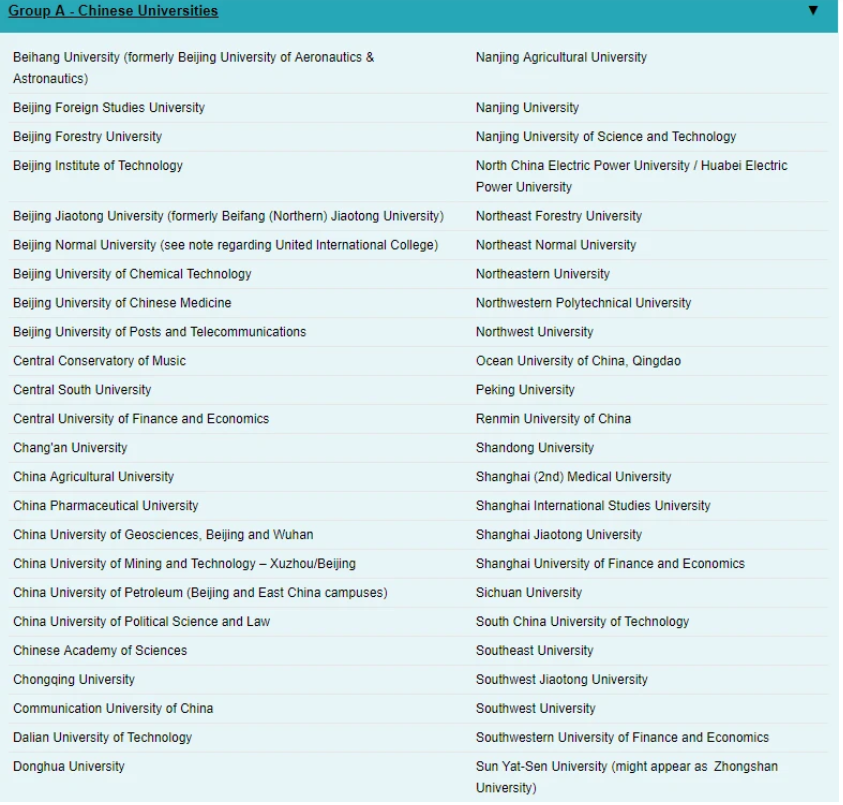 首先UCL这次的名单把中国认可院校分成了A、B、C三类,有36个985、211名校竟然不在A类,有32个都是C类!并且还有一所双非院校却在A类之中!