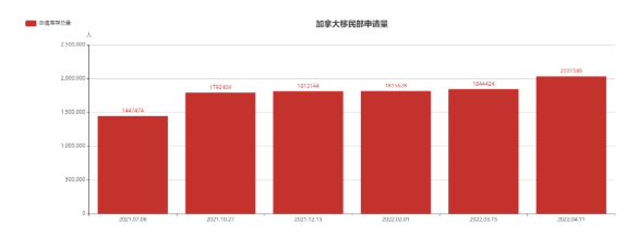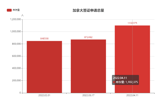 移民热度还在持续发酵,截止到4月11日,加拿大的签证申请量就已经出现了暴增态势。