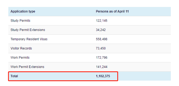 截至目前,加拿大移民部收到的签证申请总量已经来到了 1,102,375份 。
