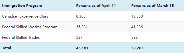 快速通道(Express Entry)的申请积压略有减少。4月份申请人超过4.5万人,3月份是5.2万人。