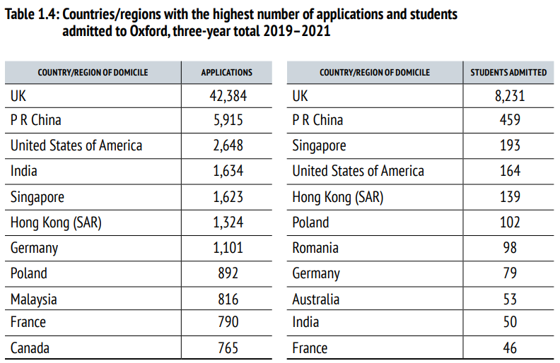 相比上一年数据,中国大陆地区申请人数上涨1千人,是不小的比例,由此可见,中国学生申请牛津等高端学府的热情是一年高过一年的。