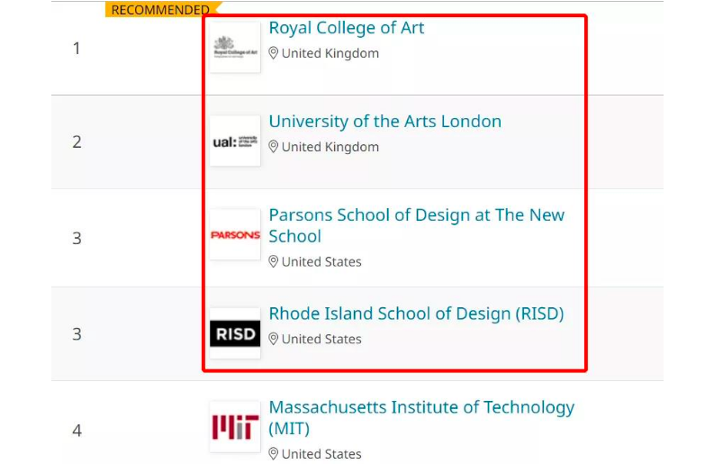 而在2021年QS艺术&设计大学排行榜中,排名靠前的是皇艺、伦艺、帕森斯、罗德岛等一众院校,它们引领着全球艺术设计的风向。