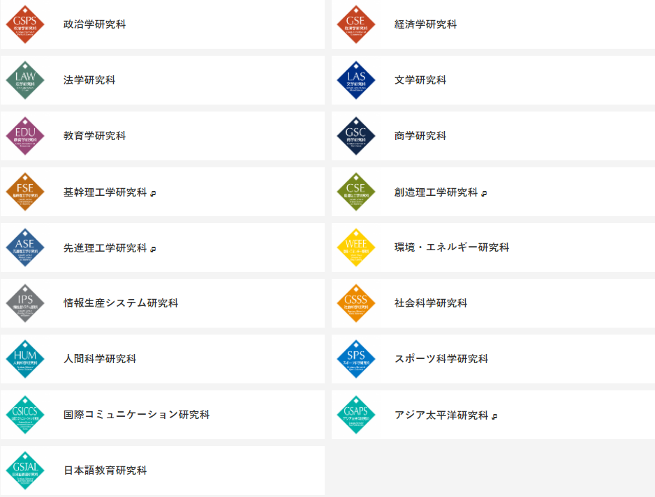 招生最多的是商学(经营学) ,其次是文化学,社会学(社会心理学,社会环境学,社会福祉学,文化人类学,比较文化学,异文化交流,社会媒体研究),国际政治学,国际关系,公共政策,其次是新闻传播学,日本语教育学,文学。