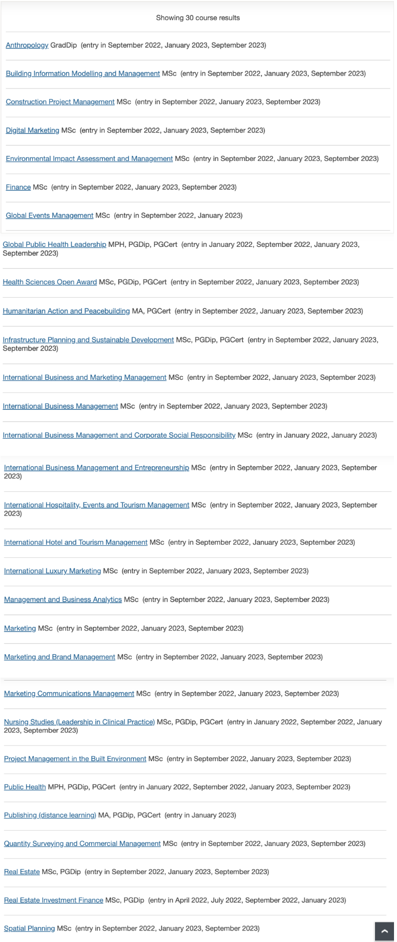 虽然在英国院校里开放春季申请的比较少,像G5院校通常就都只开放秋季入学,但是看目前已开放春季申请的学校的项目目录,也有相当不错的专业!
