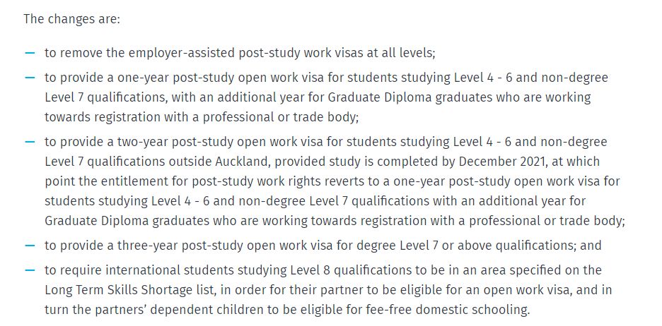 根据移民局官方消息,此次新政的颁布是为了吸引更多的留学生来新西兰 体验 世界一流 的教育 ,并且确保他们 积累足够的 经验和技能 。