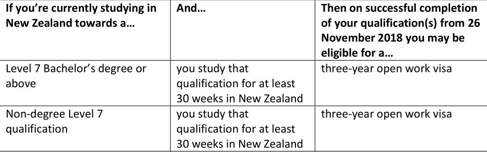 对于正在新西兰留学,且留学时间不少于30周的同学来说,不管你现在就读的是 7级或以上 (学士学位或以上)的课程还是 non-egree7级课程 ,你都可以获得 3年open工签 。