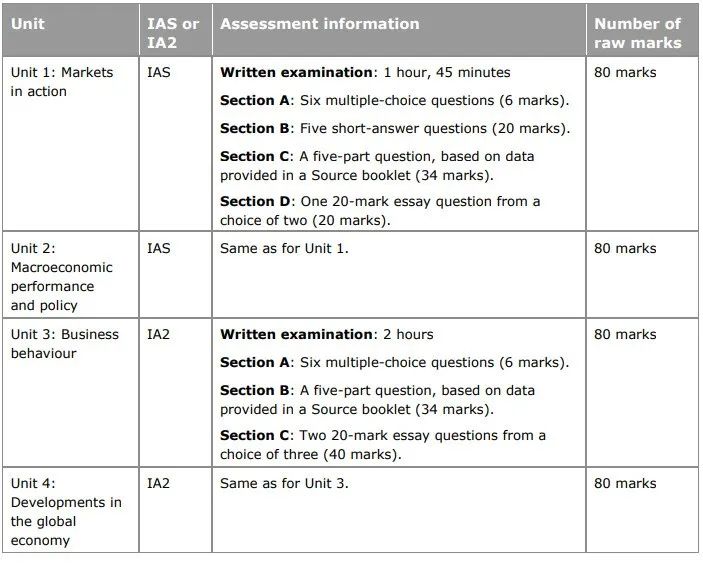 以爱德思IAL经济为例,AS和A2各两个 unit,全部外部考核。