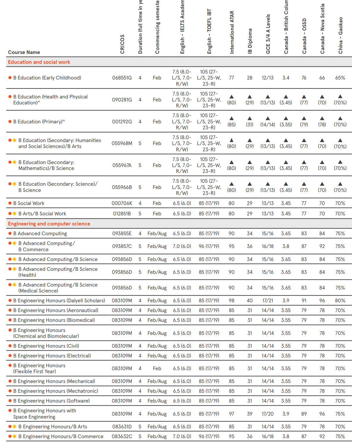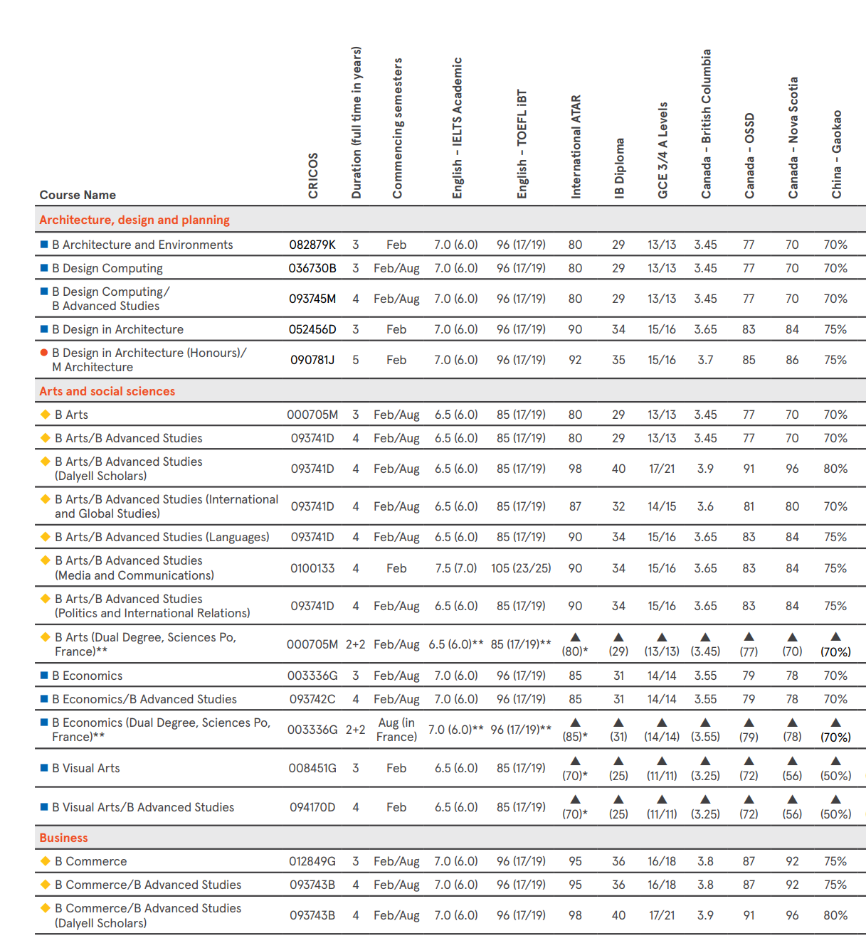 悉尼大学是承认中国的高考成绩的,具体多少分可以申请悉尼大学呢?见下图: