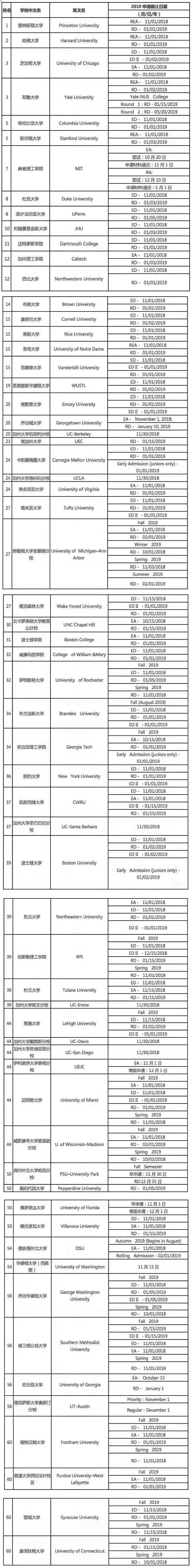 美国top60的学校本科申请截止时间如下,EA,REA, ED ,RD申请,供申请学生参考: