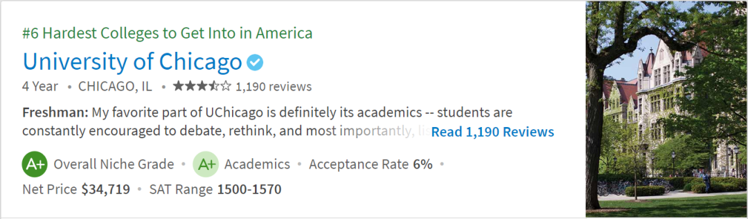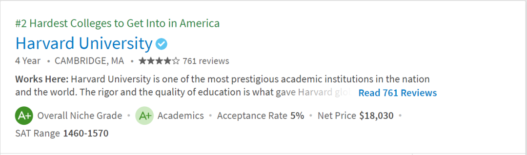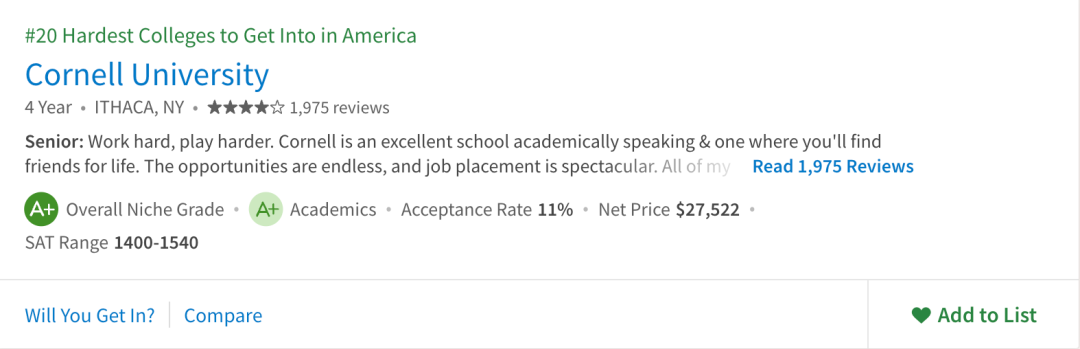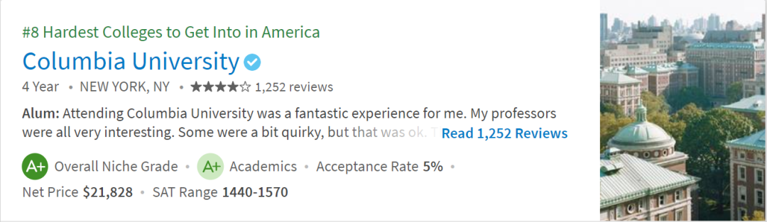 如果一所大学能够在Niche排名中有不错的表现,那么也就意味着这所大学在美国大学生中拥有相当不错的口碑。