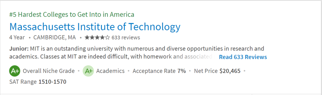 近日,被誉为“最接地气”、“美国高校排名版的大众点评”之称的Niche发布了2022美国最难申请大学排名。