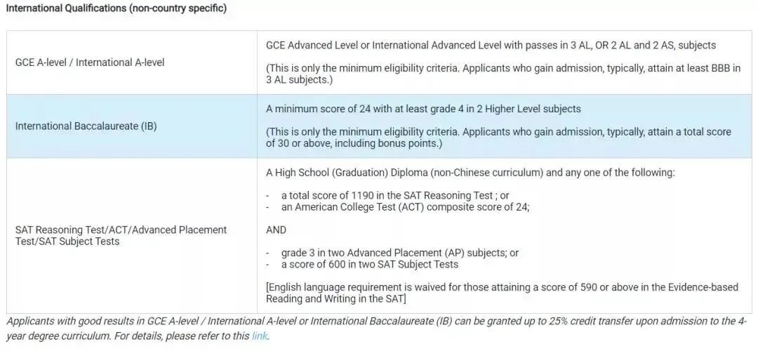 如果没有参加高考的计划,你可以通过国际生的途径申请港校本科。依据不同的考试,分为A-Level/IB/SAT等,学校官网上都有给出最低的录取要求。