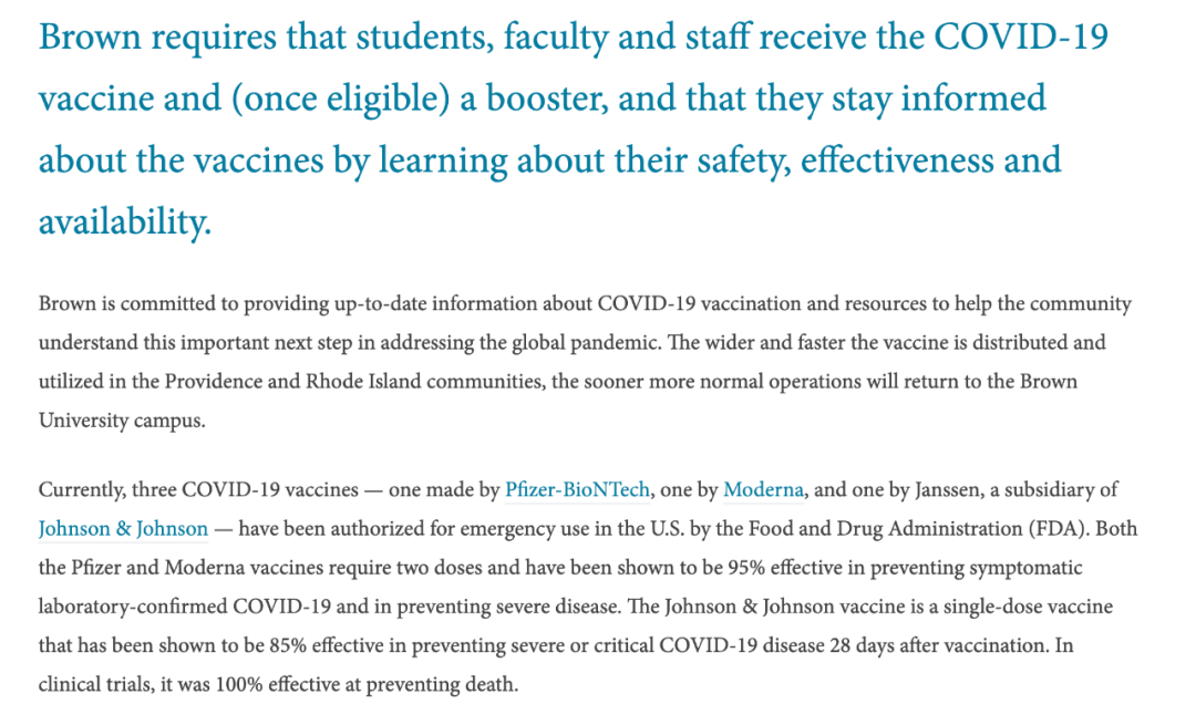 布朗大学对于疫苗接种的要求