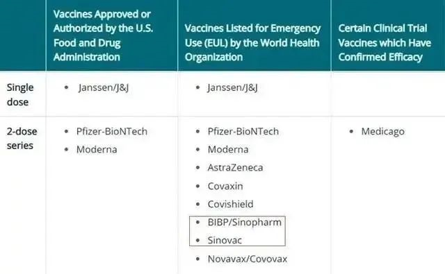 根据美国CDC最新公告,接种疫苗者需根据接种疫苗类型,确认满足以下条件才可视为完全接种:
