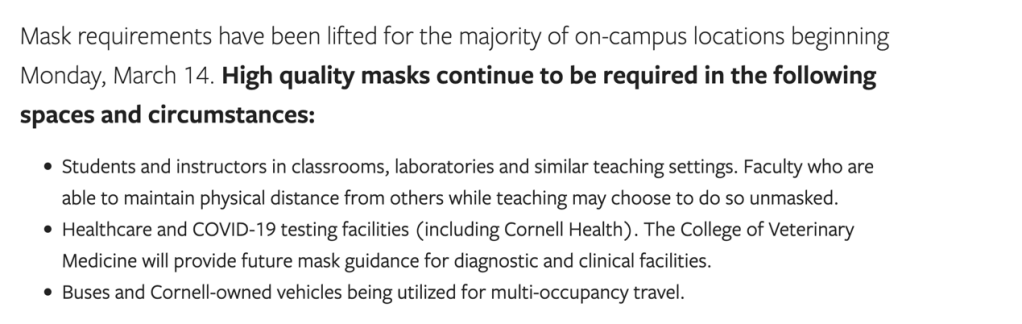 自3月21日起,耶鲁大学放宽口罩佩戴要求,除教室等教学空间、校内交通工具、校医院之外,佩戴口罩成为Optional可选项。