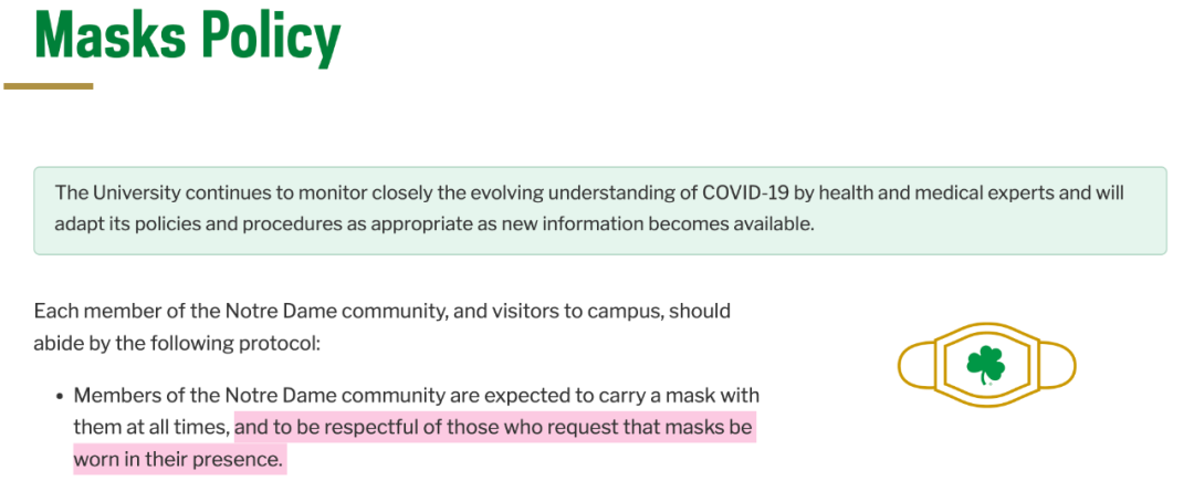 圣母大学对于口罩佩戴的部分规定