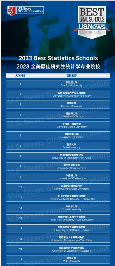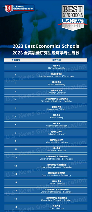 选择相应专业的院校,可参考最新发布的U.S. News & Worl Report 2023 全美最佳研究生院校排名的经济学排名、统计学排名,以及更多细分专业排名作为参考。
