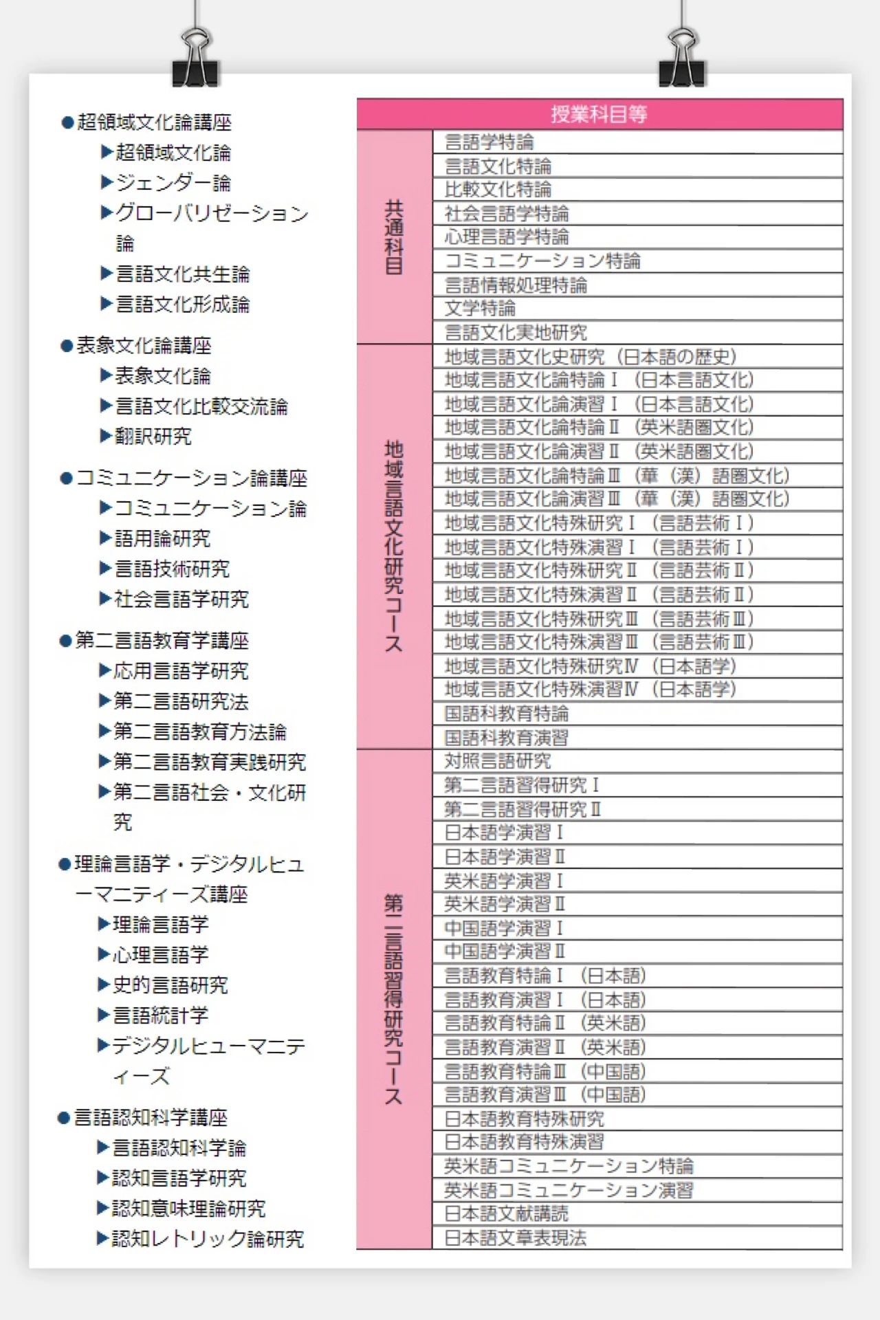 专业名称相同≠课程内容相同 。 以下是 大阪大学大学院 (左) 及 文教大学大学院 (右) 的言语文化研究科内的具体讲授科目对比。