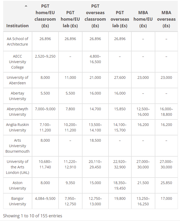 学费开支为25,387英镑(约合人民币220,866元),项目为期一年。