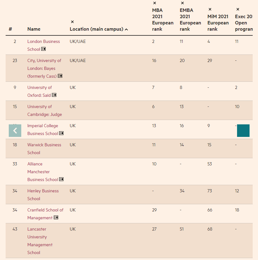 2021年英国有19所商学院上榜,数量位居欧洲各国第2。