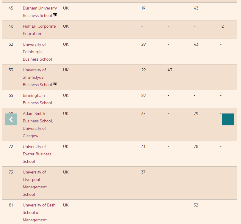 可以参考专业的院校排名,比如《金融时报》的全球商学院排名等等。
