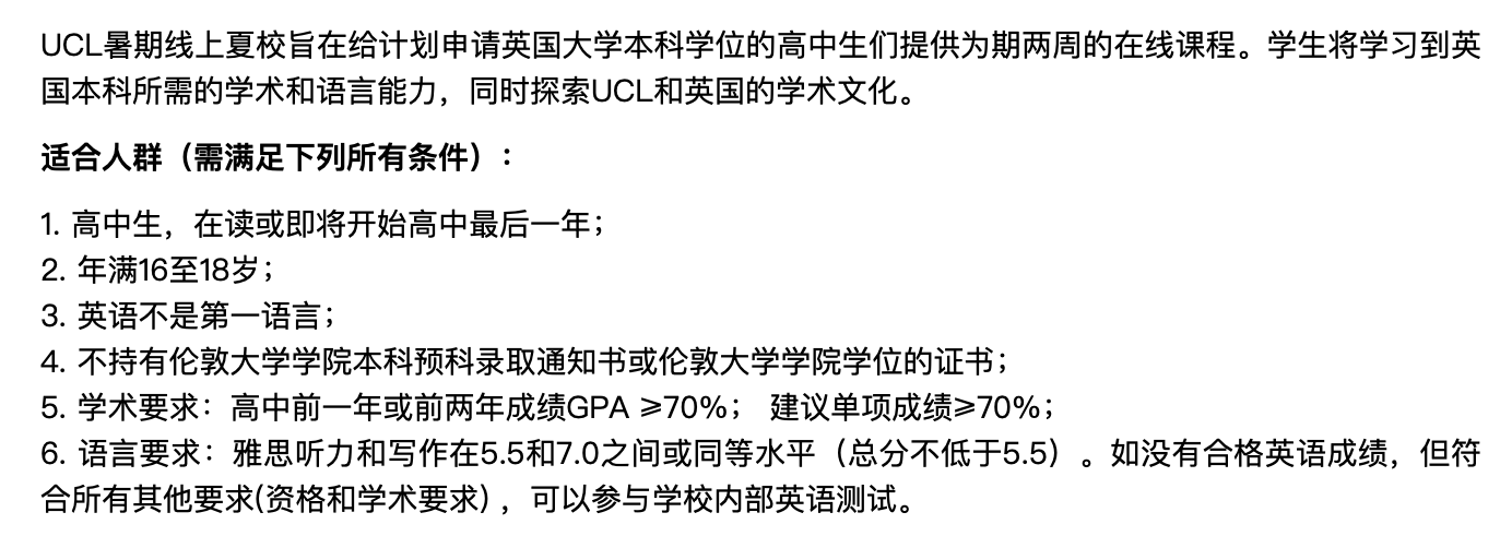 如果你是学生或学生家长,想要参加今年暑假的UCL夏校,请尽快点击文章右上方电话联系老师进行报名噢!名额有限,先到先得。