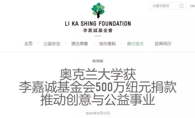 诚基金向奥克兰大学捐款 500 万纽币,相当于 2760 万港币,作为对奥克兰大学“为了我们的未来”项目的支持。