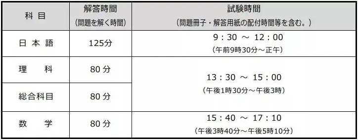 日语(满分450分,400分选择题+50分作文题) 数学(满分200分,高三知识,相当于中国理科高考数学) 理科(满分200分,高中只是,三选二:物理100分、化学100分、生物100分)