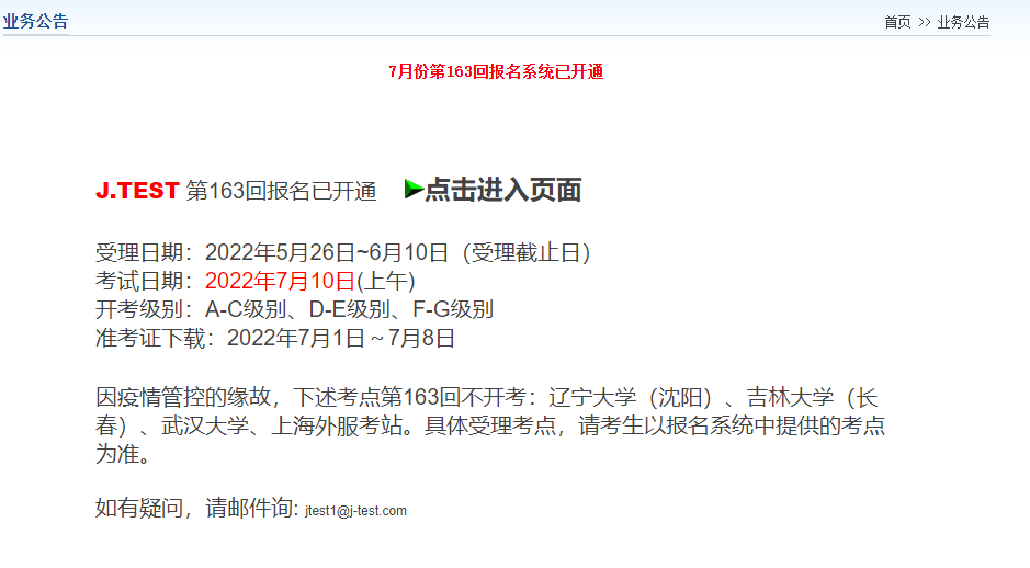 第163回J-test实用日本语鉴定考试即日起已开始报名~6月10日截止。