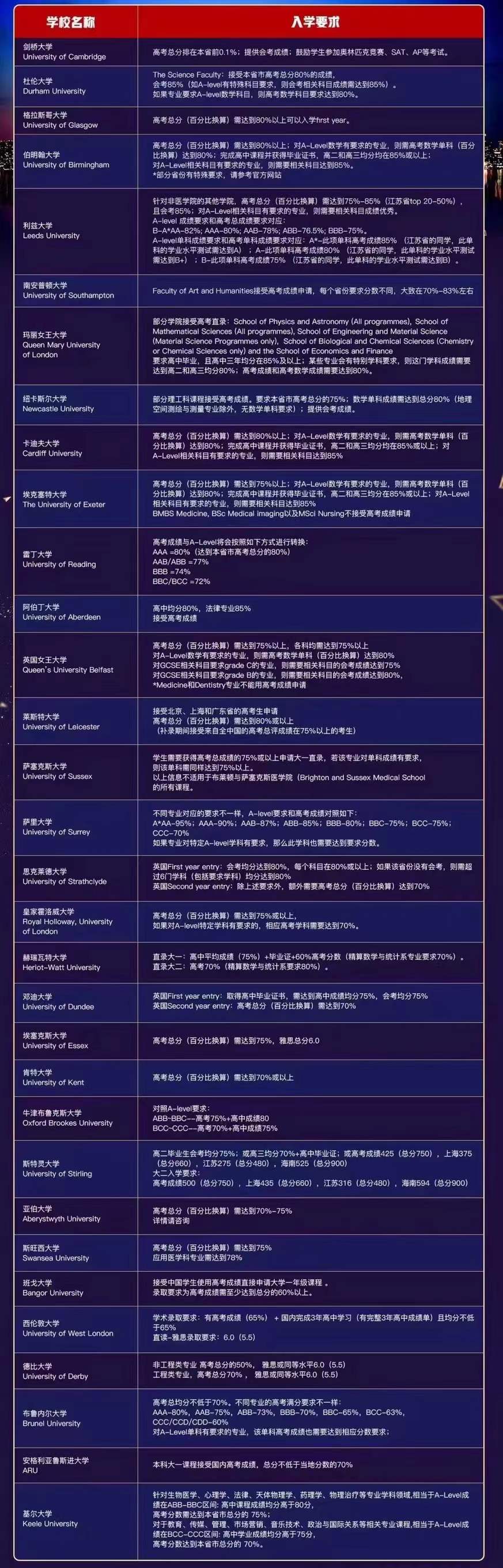 3.没有学校名单限制,所有英国高校都能通过该路径申请;