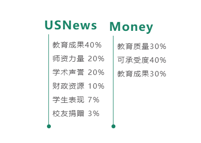说到美国大学排名,就不得不和USNews的综合排名对比一下了,我们先从两份榜单的排名依据来比较。