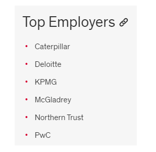 根据UIUC官网统计数据显示,会计专业有大约 83% 的毕业生在毕业6个月之后基本工资达到 $57500 ,就业公司包括德勤、毕马威等。