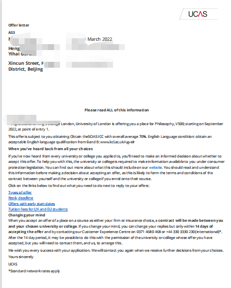 录取的院校:爱丁堡大学、KCL大学、格拉斯哥大学、伦敦亚非学院。