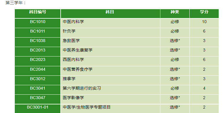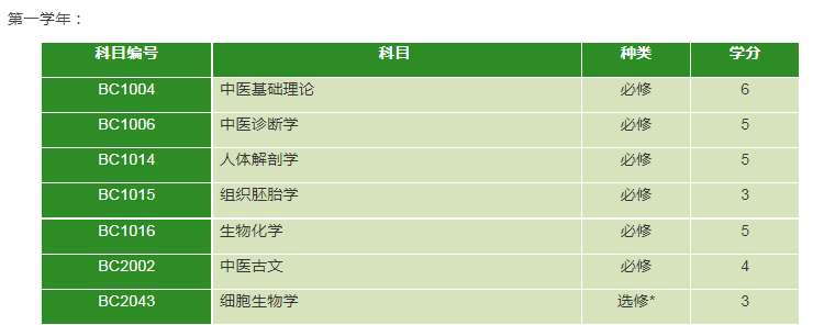 中医学学士学位课程包括公共基础课、中西医基础理论课、临床专业课、教学实习,完成183学分;再进行为期50周的毕业实习并通过考核后,将获授中医学学士学位。