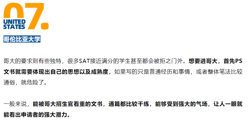 再者,哥大很看重推荐信,因为纽约本身就是个有着各种活动的精彩的城市,所以能反映出leaership的推荐信也能间接反映出你将来能给哥大在活动方面做的贡献,毕竟哥大是个社会型大学。