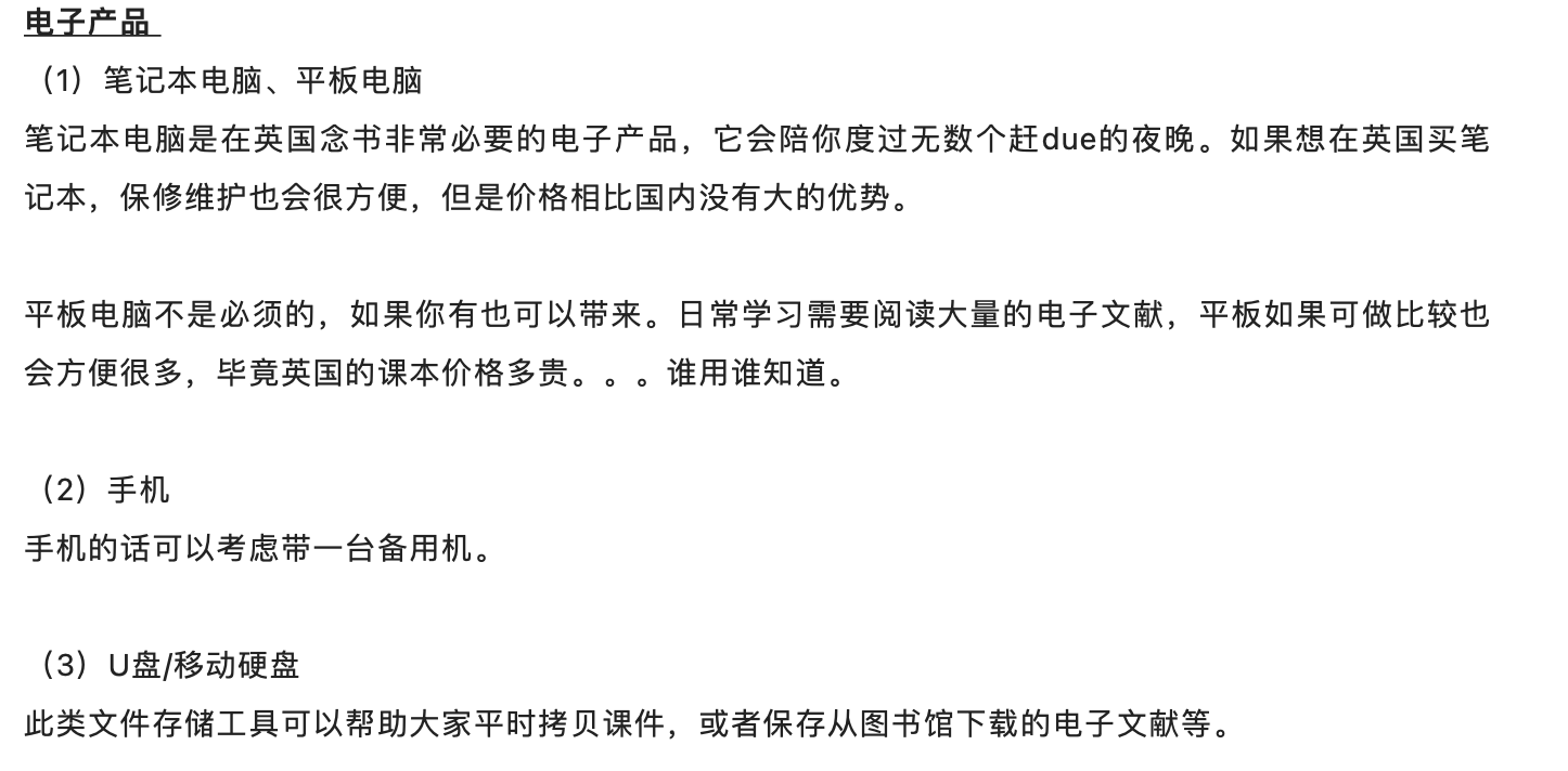 英国的文具很容易买到,但是价格相比国内贵不少,可以视重量带一些。有自己很喜欢的个性/可爱风格小文具可以适当带一点,英国不太容易买到。
