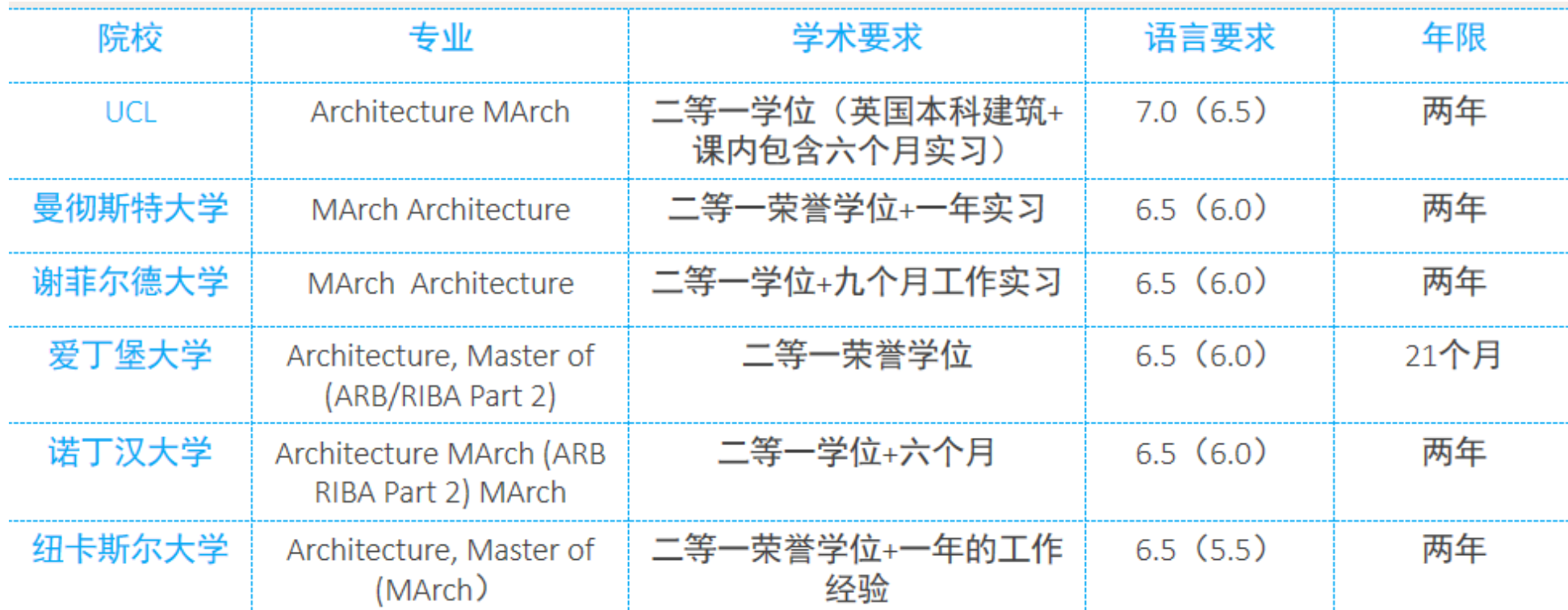 像architecture这个专业,不少学校都是提供的是两年制的专业,这些是收到RIBA或是ARB认证的,读完可以获得RIBA part 2的认证,是成为一名英国认可的专业建筑师的必须要获得资格,具体如何获得英联邦认可的建筑师资格同学们可以自己去了解一下,或者联系老师给你解惑哦。部分可以获得认证的专业如下 :