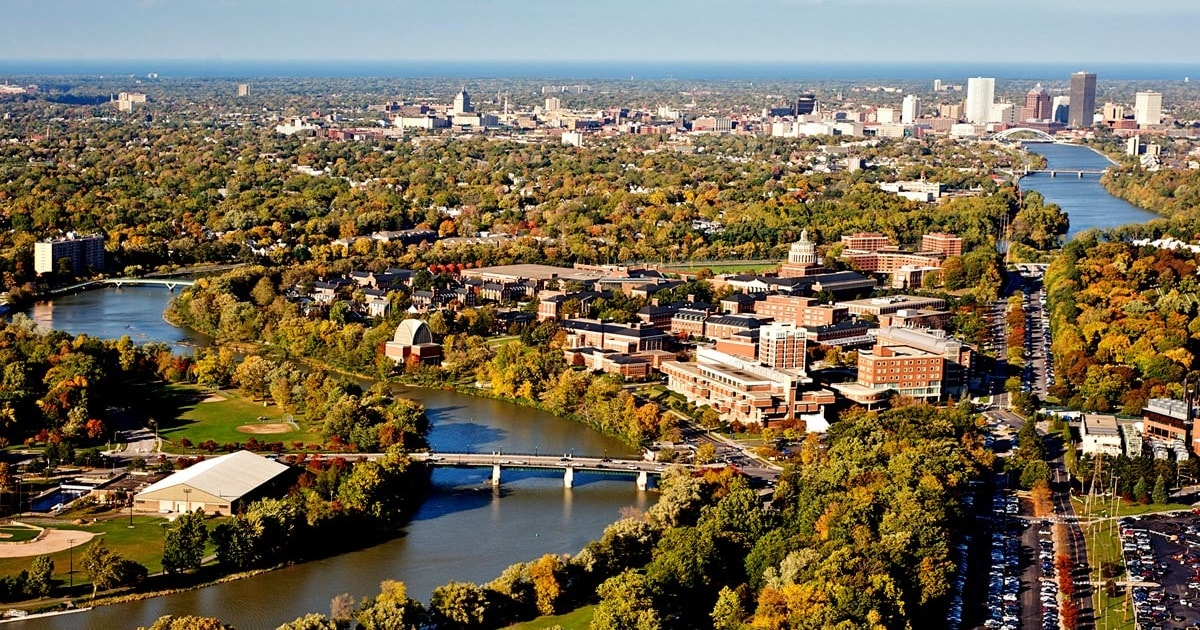 罗切斯特大学位于纽约州的罗切斯特市,这里位置绝佳。罗切斯特被福布斯杂志和居住评级年鉴评为美国最理想的居住城市前十名,被今日美国评为排名前10的大学城之一,还被每日野兽网评委“前十名美国最聪明城市”之一。