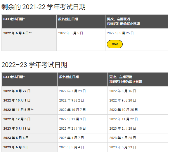 - 目前只能注册2022年下半年SAT考位,2023年上半年SAT考试需要到秋季才能报名;