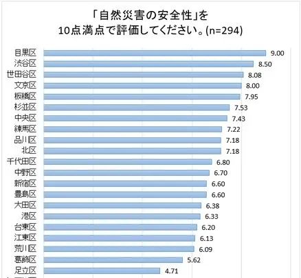 在东京23区中,很多人觉得不临海的西部比较安全。另一方面,很多人觉得荒川周边地区由于自然灾害多,导致安全性低。