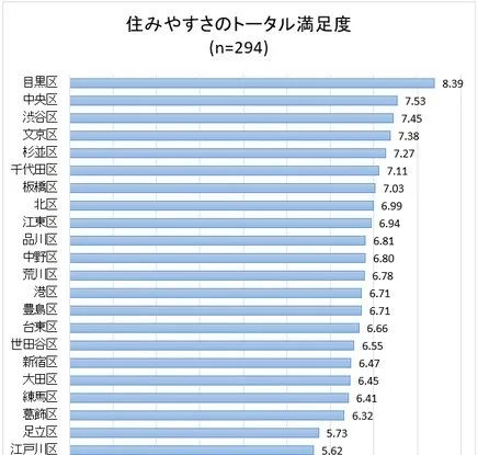 千代田区是土地费和房租市价在东京23区中最高的地区。尽管如此,住宅费用的满意度很高,也就是说,住在这里,大家都过着令人满意的生活吧。