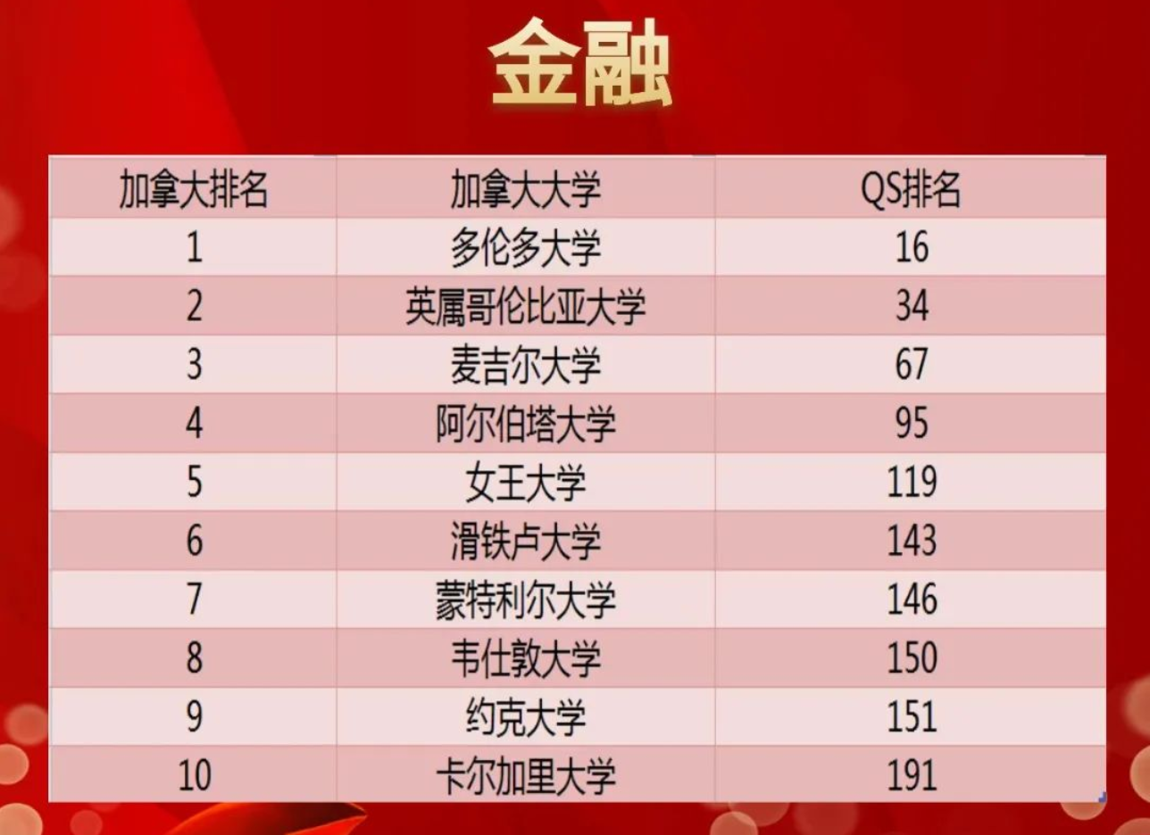 金融行业一直以来都是职场的宠儿,素来是人人羡慕的"金饭碗",加拿大金融专业吸引着不少国内学子,今天为大家介绍一下加拿大金融专业申请,一起瞧瞧吧。金融学专业主要研究的是现代金融机构、金融市场以及整个金融经济的运动法律。金融行业是加拿大经济的重要支柱,在加拿大的日常生活和工作中起着不可替代的作用。了解到,加拿大在金融产业直接雇佣五十五万从业人员,每周支付的工资达四亿两千万加币。 对于想要去加拿大留学的小伙伴来说,Top院校的金融专业尤其受追捧,竞争激烈程度可想而知。这里 帮大家整理了金融学科在 加拿大Top 10 的大学名单 !