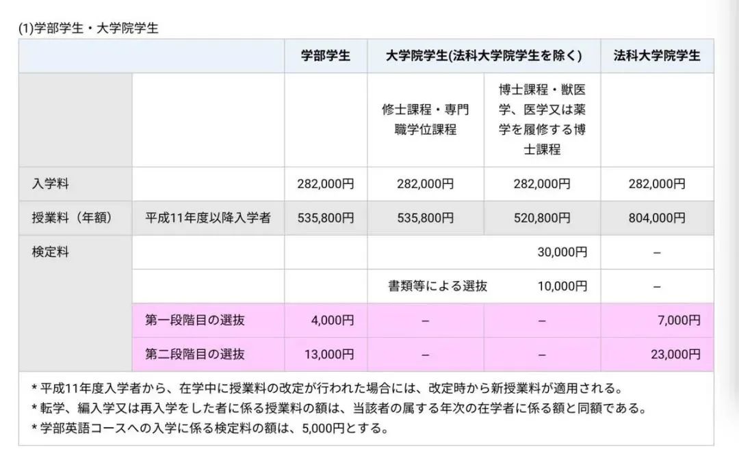日本国公立大学学费 入学金:28.2万日元(当前汇率约1.5万人民币)