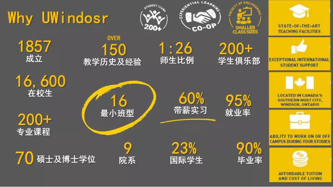 · 温莎师资雄厚,拥有众多优秀的教授-是自2007年以来,获得了安大略省大学教师联合会给予的高等教育大学最佳教学奖最多的学校