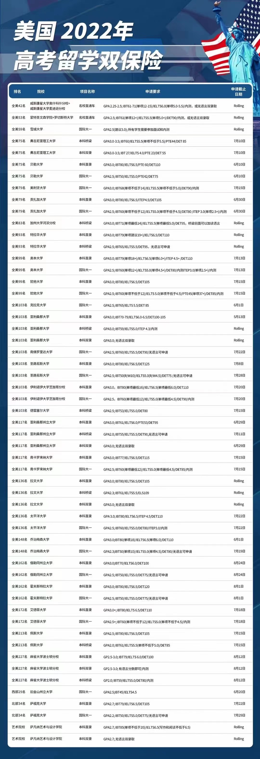 美国高考后留学可以申请的学校~