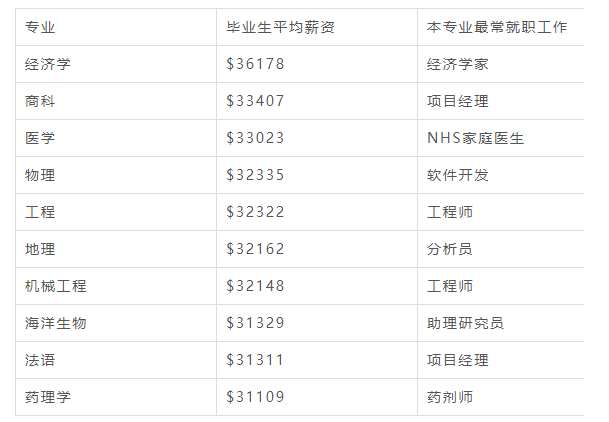 经济学专业的毕业生的平均薪资最高 ,达到了为36,178英镑,毕业生最常就业的“商业分析师”也与本专业对口。