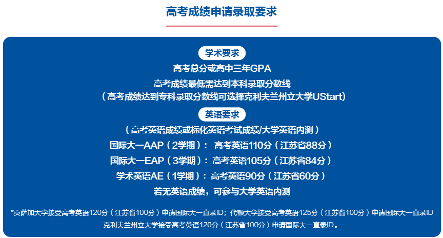美国小部分学校允许学生用高考成绩代替SAT/ACT申请国际大一/桥梁课程 /本科双录取,学生在入学后如果能通过内部考试,就可以直接“转正”,参加正式课程。