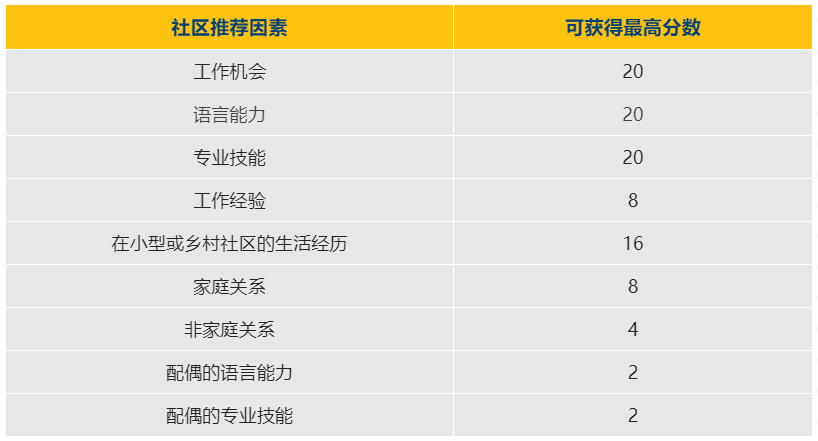 各位想通过加拿大北部及偏远地区移民试点项目(Rural an Northern Immigration Pilot,简称RNIP)来申请加拿大永居身份得学生需同时满足联邦政府RNIP申请要求以及所在区域RNIP申请要求。在达成了上一篇文章讲述得联邦政府的基本要求后,以申请桑德贝RNIP项目为例,还将接受其他因素的评估,以表明在获得永久居民身份后,有意向长期在桑德贝地区生活和工作。以下为桑德贝社区经济发展委员会(CEDC)的社区推荐因素评估标准。