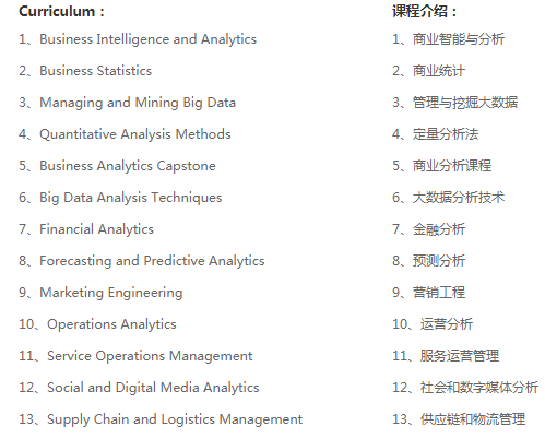 课程描述:商业分析理学硕士课程旨在帮助学生为商业分析做好准备。业务分析专业人员需要具备一系列领域的必要技能和知识,包括业务,数据库,统计,信息学,运营以及业务分析中的高级主题,如业务数据挖掘,业务中的大数据等。该专业为学生提供各种商业分析课程,并为商业分析中的基础和前沿知识做好最佳组合。