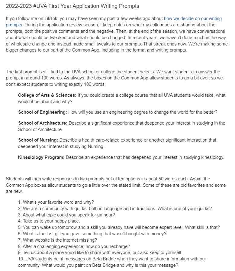 下图是昨天小编为大家介绍的弗吉尼亚大学2022-2023附加文书题目:
